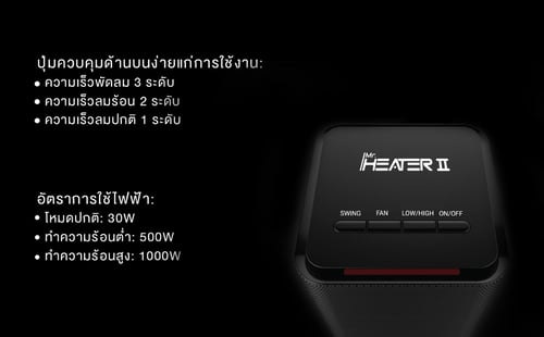 ปุ่มสวิงซ้าย-ขวา กระจายความร้อนได้ในวงกว้างอบอุ่น ได้อย่างทั่วถึง