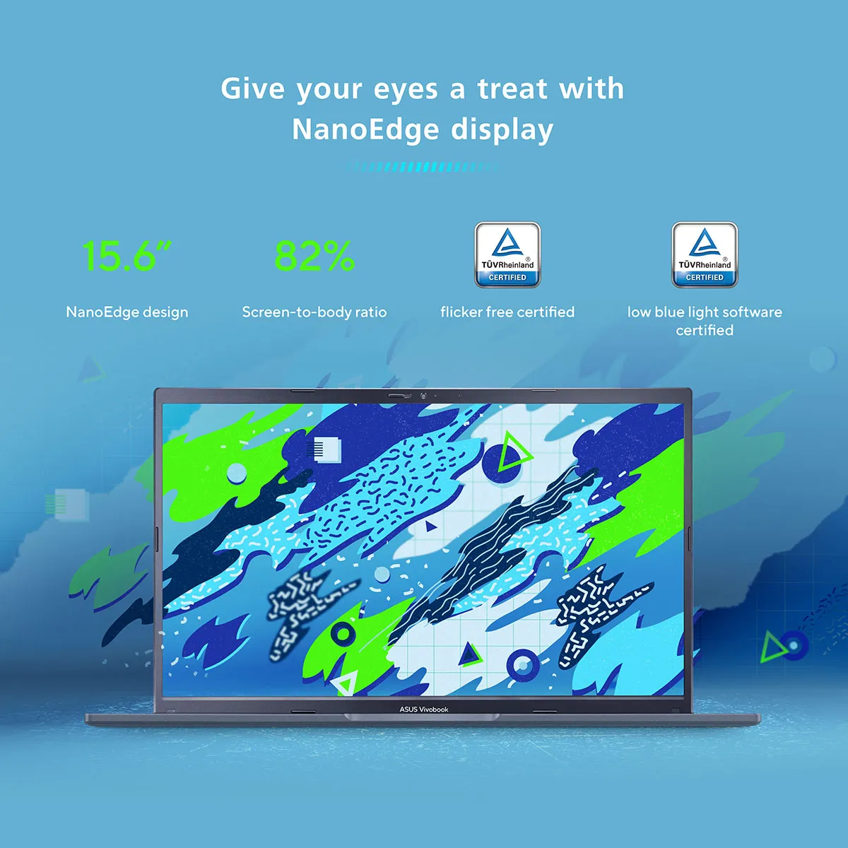 2. หน้าจอ 15.6 นิ้ว ความละเอียด FHD และได้รับการรับรองจาก TÜV Rheinland เรื่องถนอมสายตาจากแสงสีฟ้า