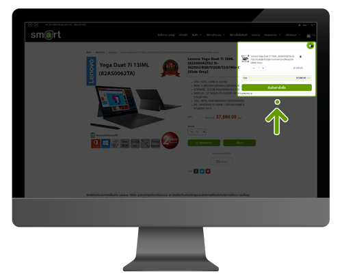 กดที่รูปตะกร้าสินค้าด้านขวามือ เพื่อ Check รายการสินค้าที่ต้องการ และกด ยืนยันคำสั่งซื้อ