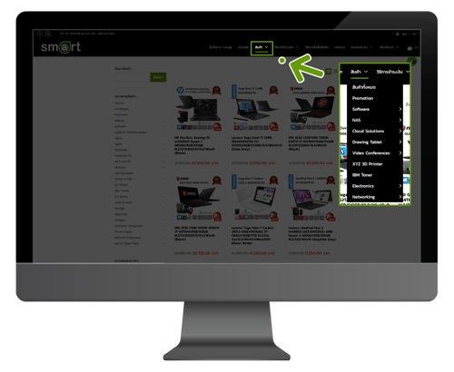 ไปที่เมนู "สินค้า" เพื่อเลือกชมประเภทสินค้าที่สนใจตามรายการที่ปรากฏ