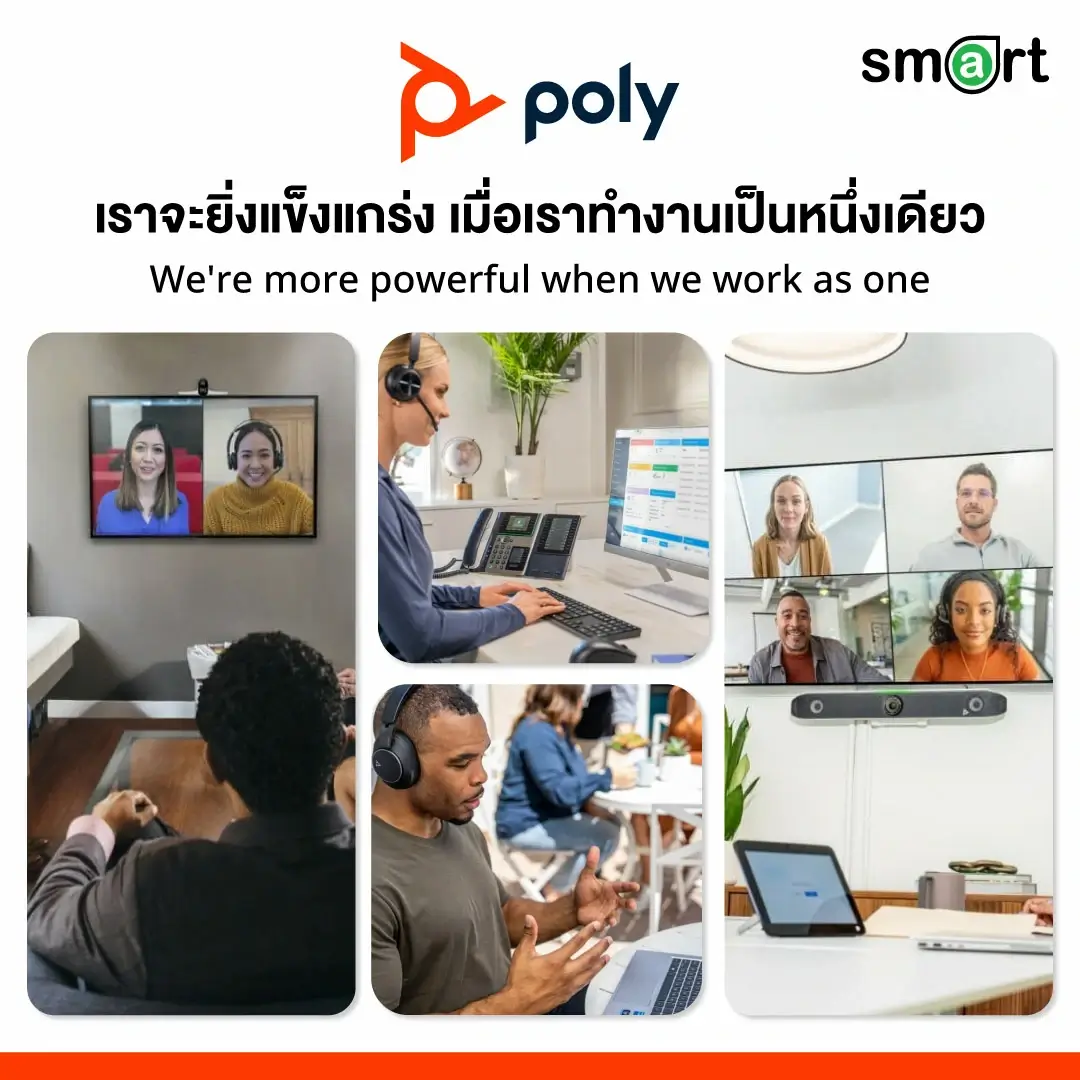 ไม่ว่าจะเป็นการระดมสมองในห้องประชุม การทำงานร่วมกันในร้านกาแฟ หรือการปรึกษางานจากห้องครัว คุณสามารถมองเห็นและถูกมองเห็นได้ทุกที่ ทุกเวลา กับทุกคน Poly มอบความมั่นใจ ความยืดหยุ่น และความได้เปรียบให้คุณสามารถควบคุมการสนทนาได้อย่างเต็มที่