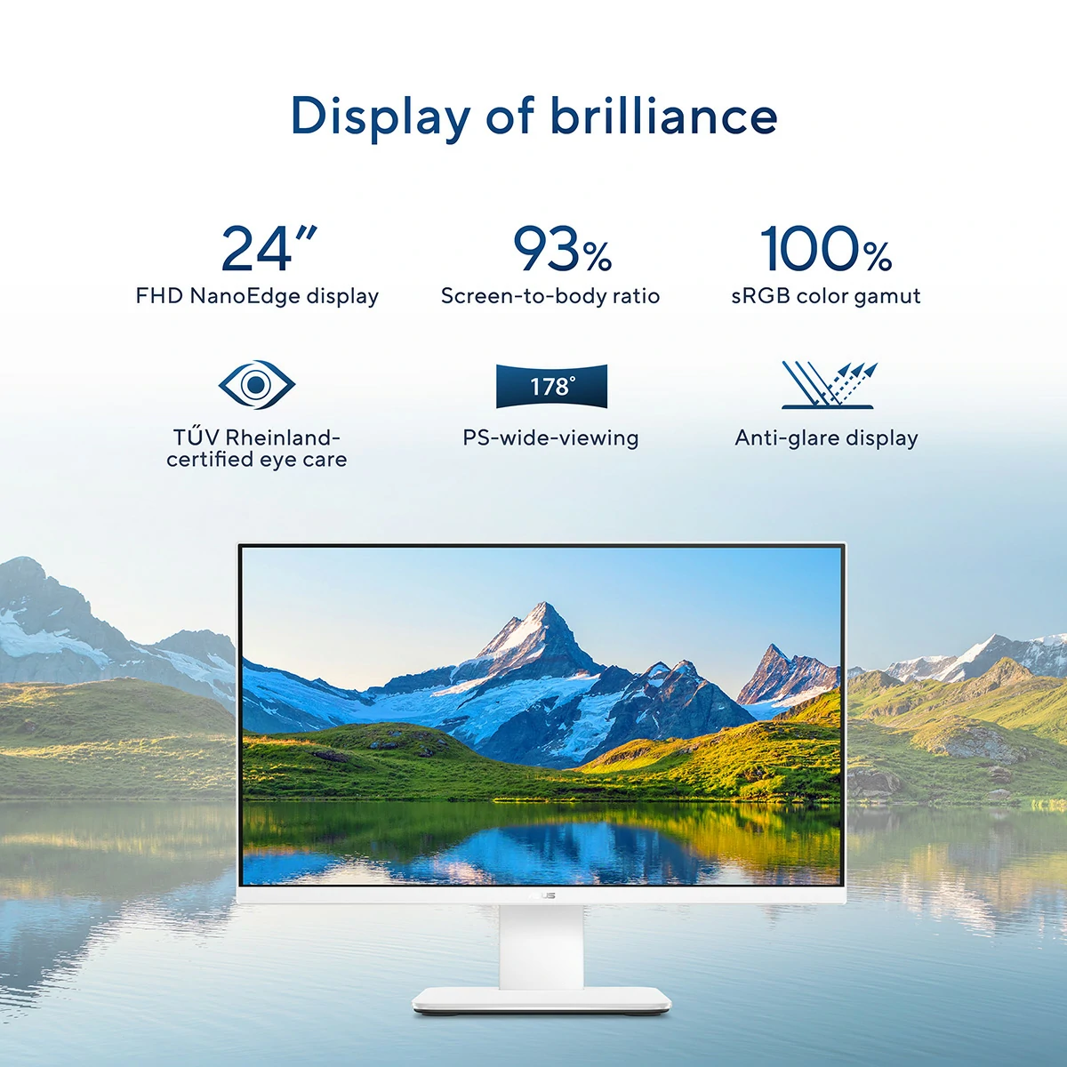 1. หน้าจอความละเอียด Full HD (1920 x 1080) สีสันสมจริง 100% sRGB ขนาด 24 นิ้ว 100Hz สัดส่วนหน้าจอต่อตัวเครื่อง 93%