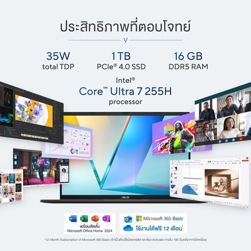 4. ขับเคลื่อนด้วย โปรเซสเซอร์ระดับสูง Intel Core Ultra 7 Processor 255H ช่วยในการทำงานมัลติทาสก์ ได้ผลลัพธ์รวดเร็วทันใจ, แรม 16GB DDR5 (รองรับการอัปเกรด) และ ความจุ 1TB M.2 NVMe PCIe 4.0 SSD