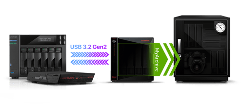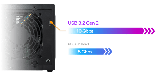 Xpanstor 4 รุ่นใหม่ทั้งหมดมาพร้อมกับ USB 3.2 Gen 2 พร้อมซ็อกเก็ต Type-C ซึ่ง USB 3.2 Gen 2 ถ่ายโอนไฟล์ได้เร็วยิ่งขึ้นด้วยความสามารถในการถ่ายโอนสูงสุด 10 Gbps อีกทั้ง Xpanstor 4 ยังเข้ากันได้กับอุปกรณ์ ASUSTOR NAS ที่รองรับ USB 3.2 Gen 1 และจะทำงานด้วยความเร็วสูงสุด 5 Gbps ที่อุปกรณ์เหล่านั้นรองรับ ใช้ Xpanstor 4 เพื่อขยายความจุของ NAS ของคุณเพื่อเพิ่มเวิร์กโฟลว์ของคุณได้ตามต้องการ