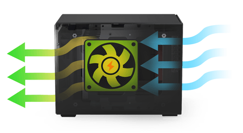 พัดลมภายในของ Xpanstor 4 จะปรับความเร็วโดยอัตโนมัติตามอุณหภูมิของฮาร์ดไดรฟ์ และรักษาสมดุลระหว่างเสียงและประสิทธิภาพ