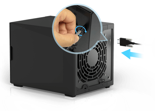 Xpanstor 4 มีหัวเชื่อมต่อแบบ USB-C และสายเคเบิล ที่ออกแบบมาเป็นพิเศษ สายเคเบิลที่มาพร้อมกับ Xpanstor 4 ของคุณจะล็อคเข้ากับยูนิตส่วนขยายของคุณด้วยสกรูสองตัวที่แต่ละด้านของสายเคเบิลเพื่อล็อคเข้ากับยูนิตส่วนขยายเพื่อป้องกันไม่ให้หลุดออกโดยไม่ได้ตั้งใจ