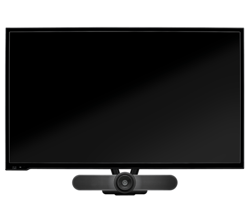 Logitech TV Mount for MeetUp จะยึด MeetUp ConferenceCam ให้อยู่ด้านบนหรือด้านล่างหน้าจอแบนอย่างแน่นหนา