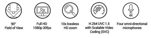 นำเสนอการประชุมที่สมจริงด้วยภาพวิดีโอคุณภาพสูง HD 1080p ที่อัตรา 30 เฟรมต่อวินาทีของ GROUP การบีบอัด H.264 ลดการใช้แบนด์วิธ ซูม 10 เท่า รองรับภาพโคลสอัพที่แสดงรายละเอียดอย่างชัดเจน โฟกัสอัตโนมัติเพิ่มความสะดวกในการตั้งค่า
