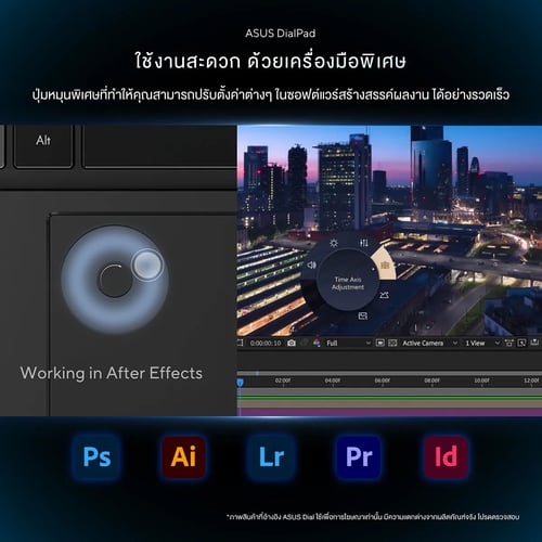 3. ASUS Dial เครื่องมือพิเศษ เอกสิทธิ์จากเอซุส ปุ่มหมุนแบบ Physical ที่จะช่วยให้คุณสามารถปรับตั้งค่าพารามิเตอร์ในซอฟต์แวร์ต่างๆ ได้ง่ายด้วยปลายนิ้ว ใช้งานได้ร่วมกับซอฟต์แวร์ตระกูล Adobe®