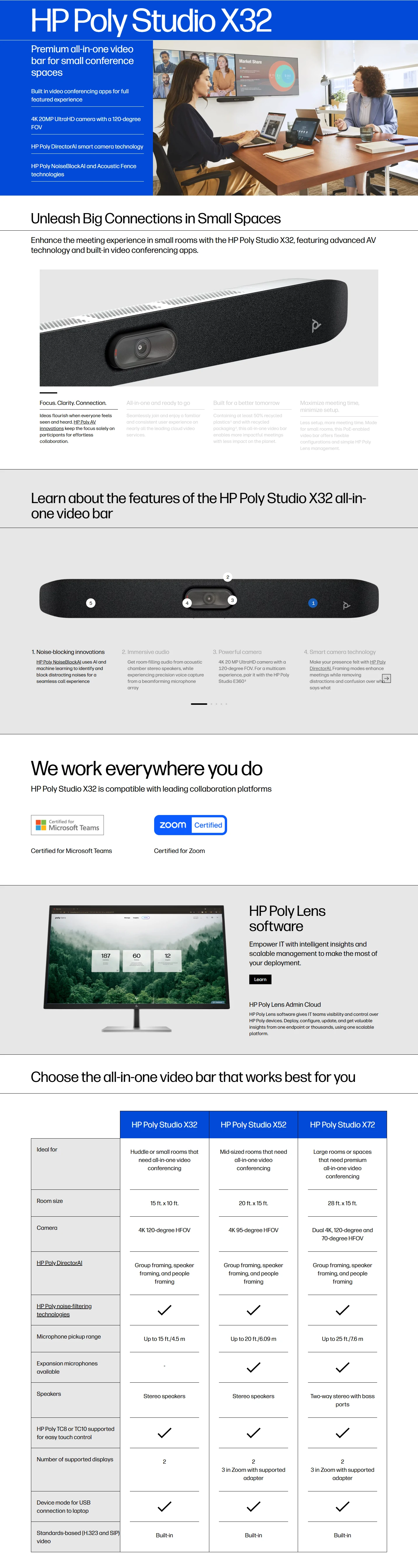 Poly Studio X32 Premium all-in-one video bar for small conference spaces