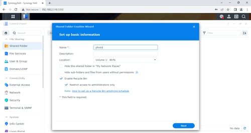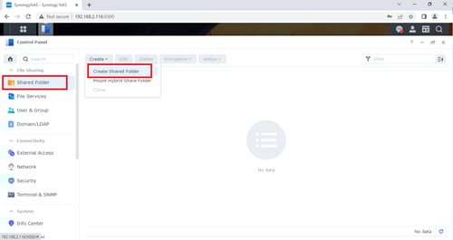 41. สร้าง Shared Folder โดยไปที่ Main Menu > Control Panel > Shared Folder > Create เลือก Create Shared Folder