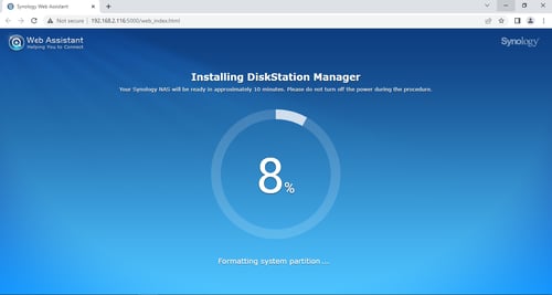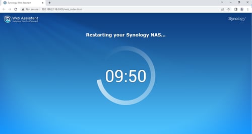 8. รอจนเสร็จสิ้นกระบวนการ ซึ่งอาจจะใช้เวลาระยะนึง จนกว่าระบบจะทำการสั่ง Restart ตัว NAS
