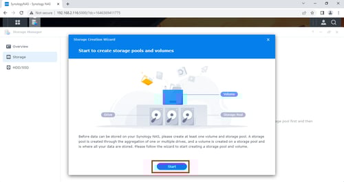 10. การติดตั้ง DiskStation Manager 7.0 หรือ DSM 7.0 สำเร็จแล้ว กด Start เพื่อทำการสร้าง User Administrator สำหรับจัดการระบบ