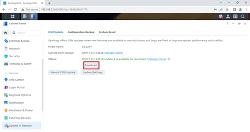 30. เลือก DSM Update จากนั้นกดปุ่ม Download