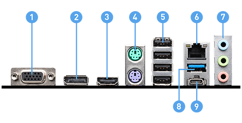 | Onboard Graphics | 1x HDMI™ Support HDMI™ 1.4, maximum resolution of 4K 30Hz* 1x DisplayPort Support DP 1.4, maximum resolution of 4K 60Hz* 1x D-Sub Support VGA, maximum resolution of 2048x1536 50Hz, 2048x1280 60Hz, 1920x1200 60Hz *Available only on processors featuring integrated graphics. Graphics specifications may vary depending on the CPU installed.