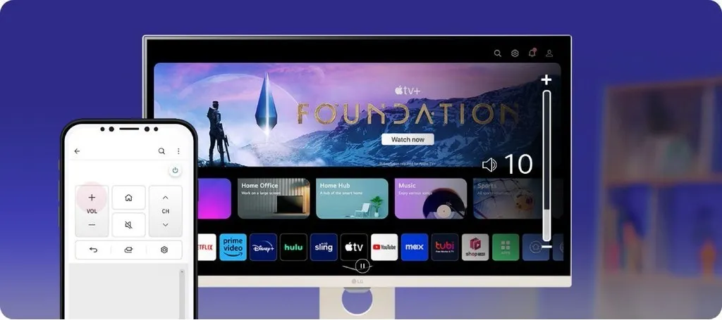 LG Smart Monitor ได้รับการออกแบบมาเพื่อการทำงานหลายอย่างพร้อมกันในขณะที่คุณทำงาน เล่น และรับชม เชื่อมต่อจอแสดงผล 31.5 นิ้วเข้ากับแล็ปท็อป เดสก์ท็อป หรือคอนโซลเกม เพื่อดื่มด่ำไปกับงานหรือเกมของคุณ หรือด้วย LG webOS ในตัวของจอภาพ คุณสามารถรับชมรายการโปรดจากแอพสตรีมมิ่งที่คุณชื่นชอบได้