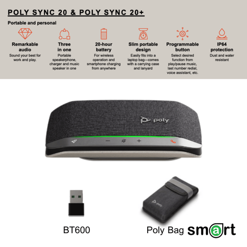 Poly SYNC 20+ USB-A with Dongle USB-A Bluetooth Smart Speakerphone รองรับภาษาไทย